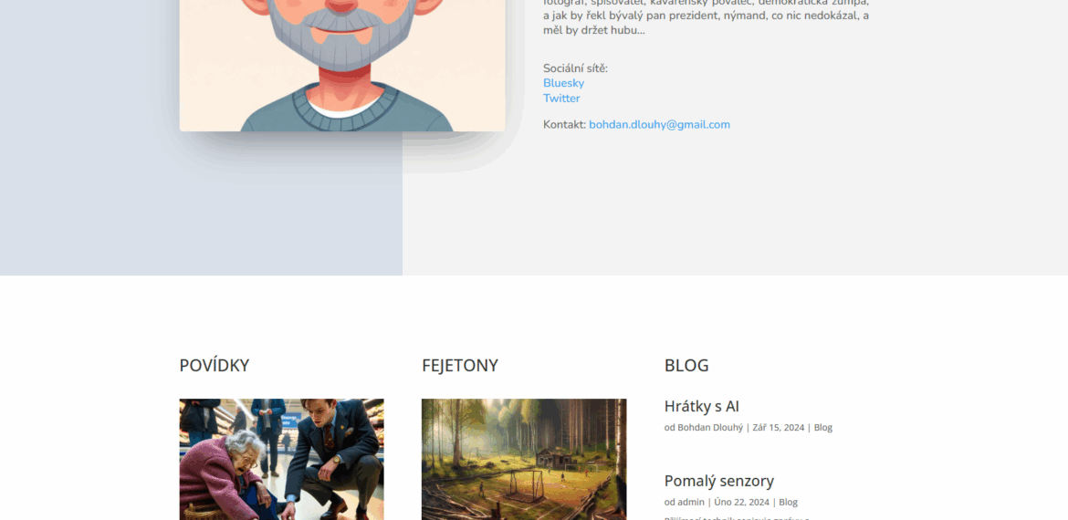 Popis webu Webové stránky českého spisovatele Bohdana Dlouhého. Představení jeho tvorby, detailní stránky o jednotlivývh knihách, blog, fotogalerie. praesent netus aptent ut ornare netus dictum vivamus et volutpat, nunc lorem enim urna pellentesque egestas aenean tincidunt, torquent felis orci nibh aliquam. Vytvořeno: březen, 2024 Zákazník: Bohdan Dlouhý Detail: Responzivní web,